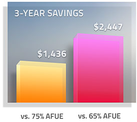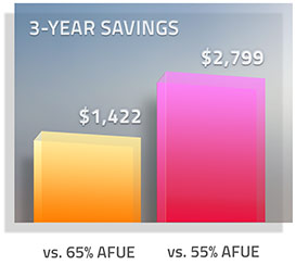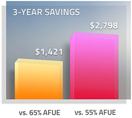 A 80% AFUE Efficiency rating represents a potential savings of hundreds of dollars each year*, compared to standard furnaces.